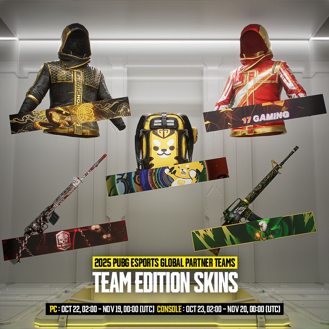 PUBG: BATTLEGROUNDS developers have announced the release of a new batch of esports skins that became available in the game on October 22. The collection includes items from The Expendables, Team Falcons, Gen.G, Petrichor Road, and 17Gaming — each set priced at 990 G-Coin.