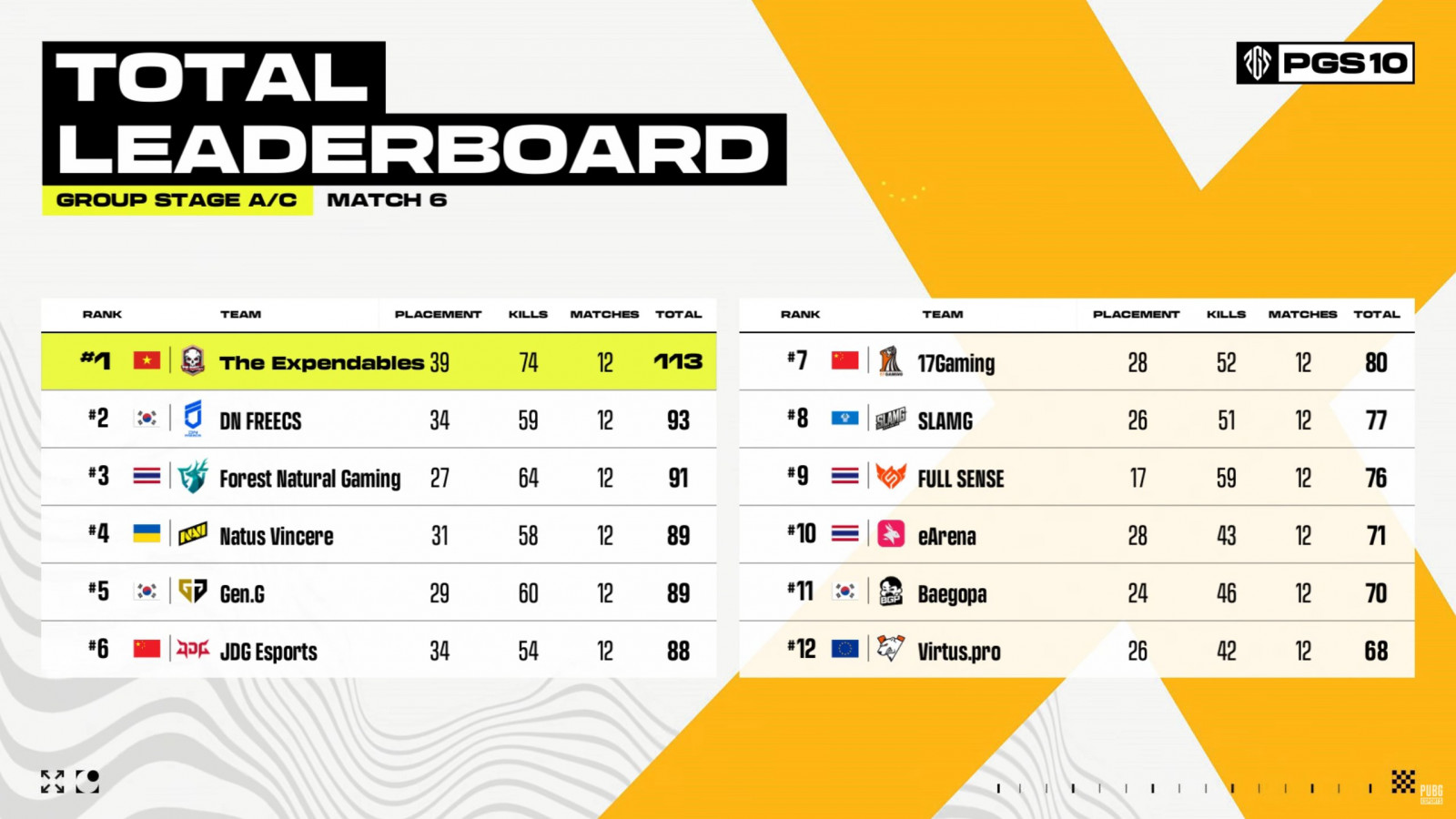 The Expendables topped the PUBG Global Series 10 standings after the final day of the group stage, where teams from Groups A and C faced off.