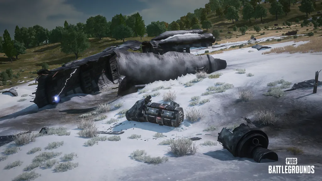 During a clandestine experiment, a catastrophic failure sent multiple Tythonic Satellites crashing down onto Erangel. The impact ruptured the Satellites and released cryogenic gas, which soon spread across the island. The Blue Zone was not spared from its influence, and Erangel’s climate began to warp under the growing chill. The crash sites froze over, and the island soon found itself gripped by sudden, severe changes in weather.