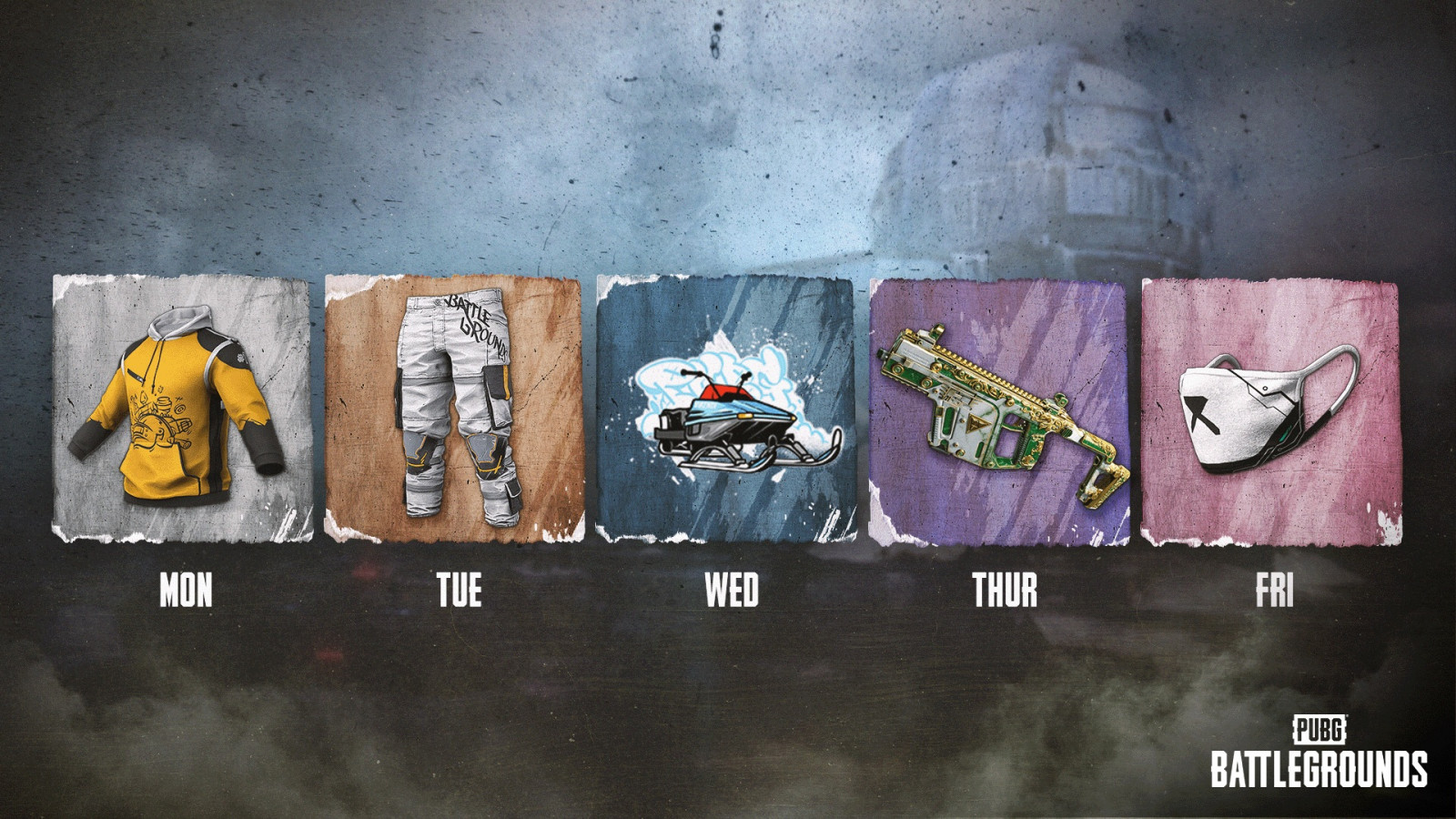 Drops are available for any live stream featuring PUBG: BATTLEGROUNDS. Collect a different reward every day from Monday to Friday!
