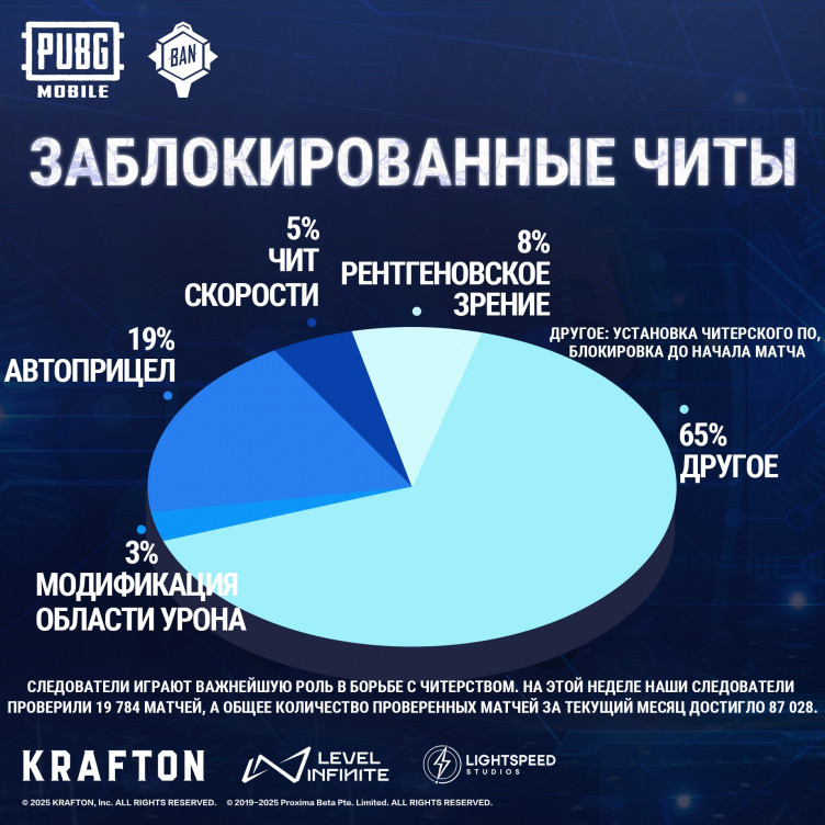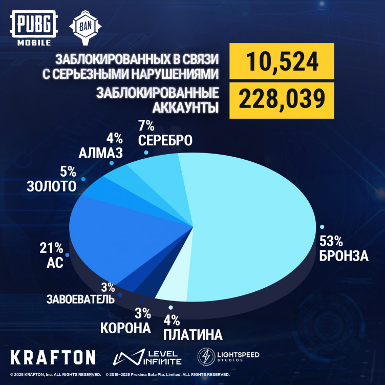 Разработчики мобильной версии PUBG забанили 228 тысяч аккаунтов читеров (и больше 10 тысяч устройств) за период с 19 по 25 сентября 2025 года.