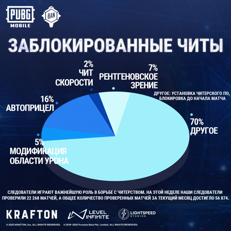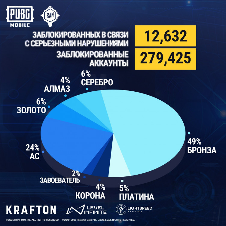 Разработчики мобильной версии PUBG забанили 279 тысяч аккаунтов читеров (и больше 12 тысяч устройств) за период с 17 по 23 октября 2025 года.