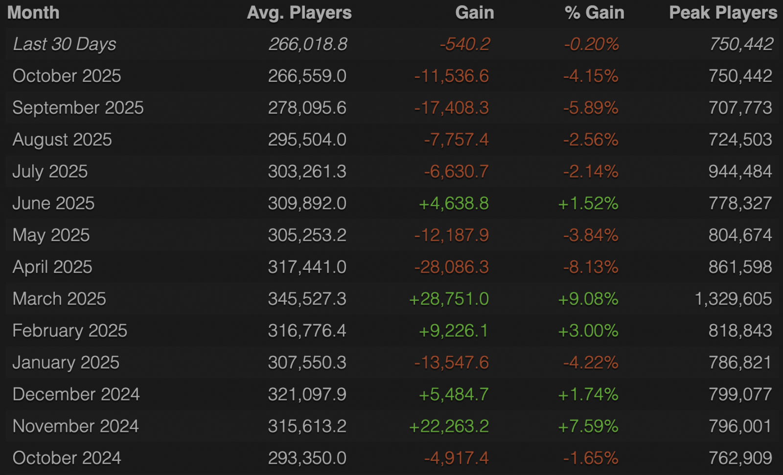 Пиковый онлайн в октябре составил 750 тысяч игроков, что на 43 тысячи больше, чем в предшествующем месяце. Статистику предоставил портал Steam Charts.