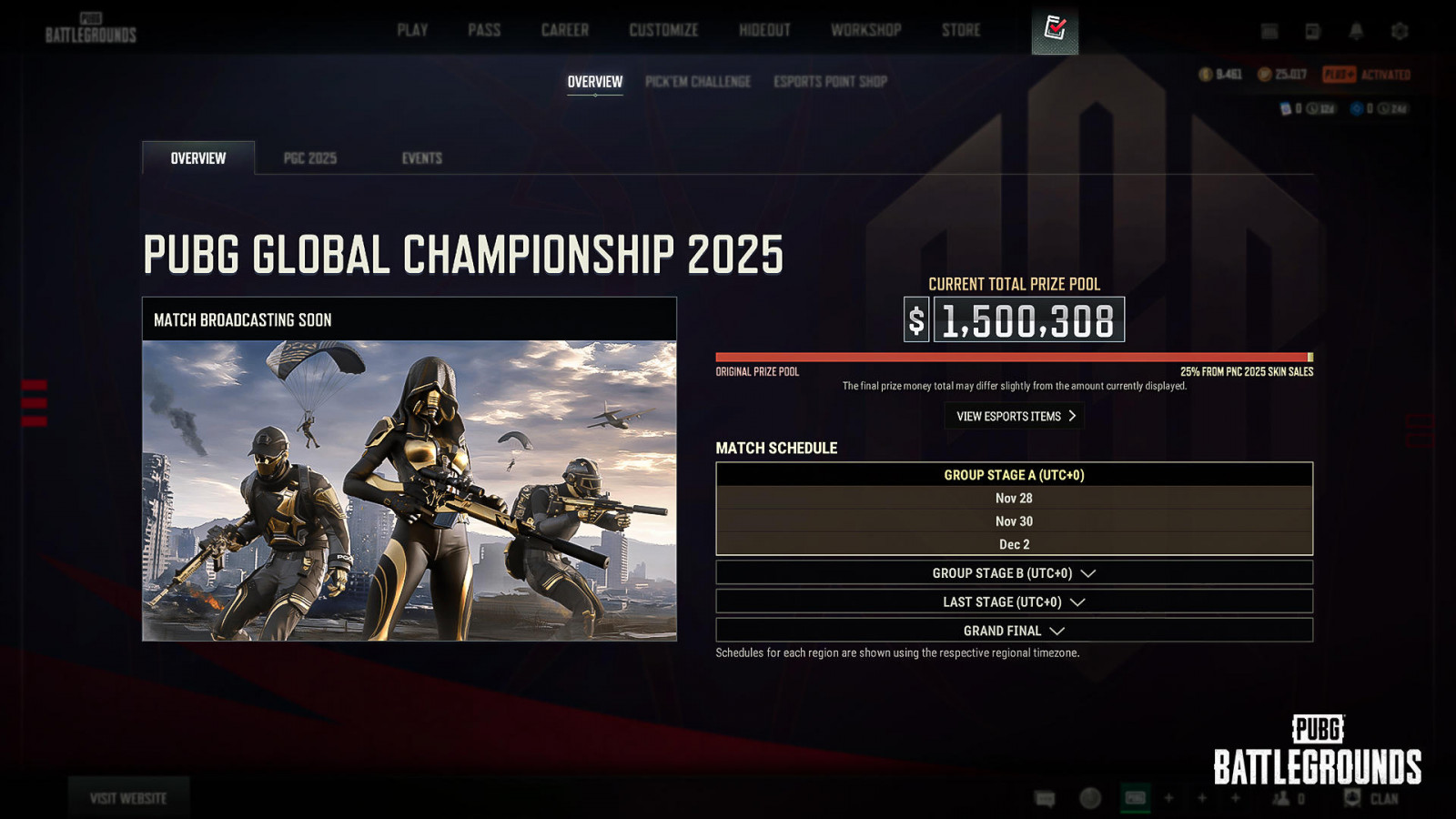 - Подробная информация будет скоро доступна на сайтеPUBG Esports.