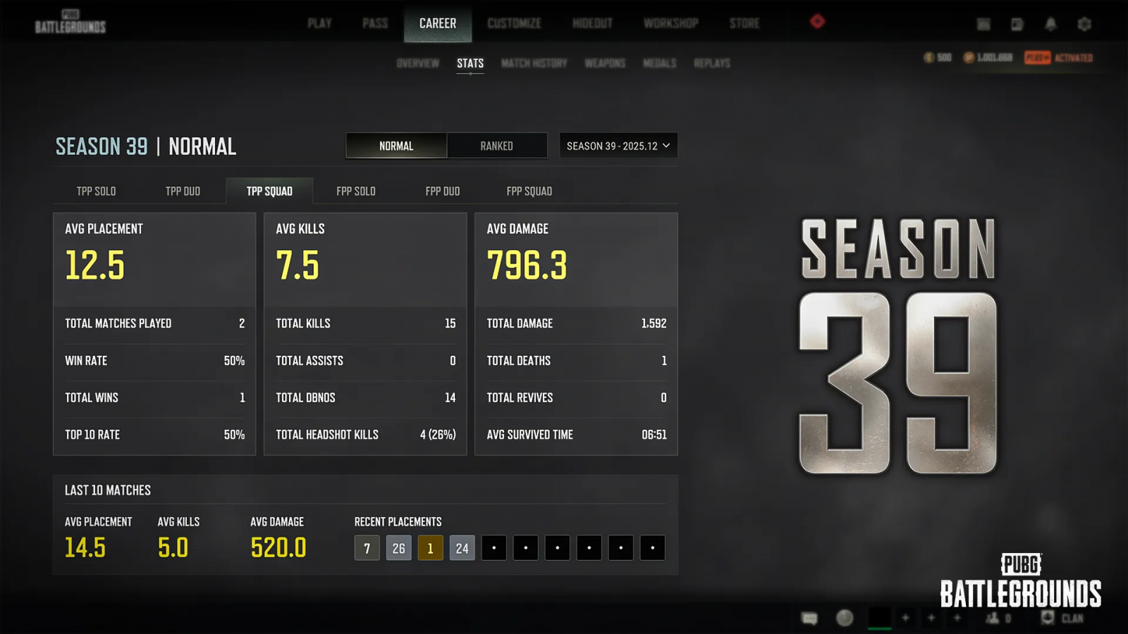 В обновлении 39.1, которое вышло в PUBG: BATTLEGROUNDS 3 декабря, разработчики внесли ряд изменений в раздел «Карьера» и интерфейс игры. Подробности доступны далее.