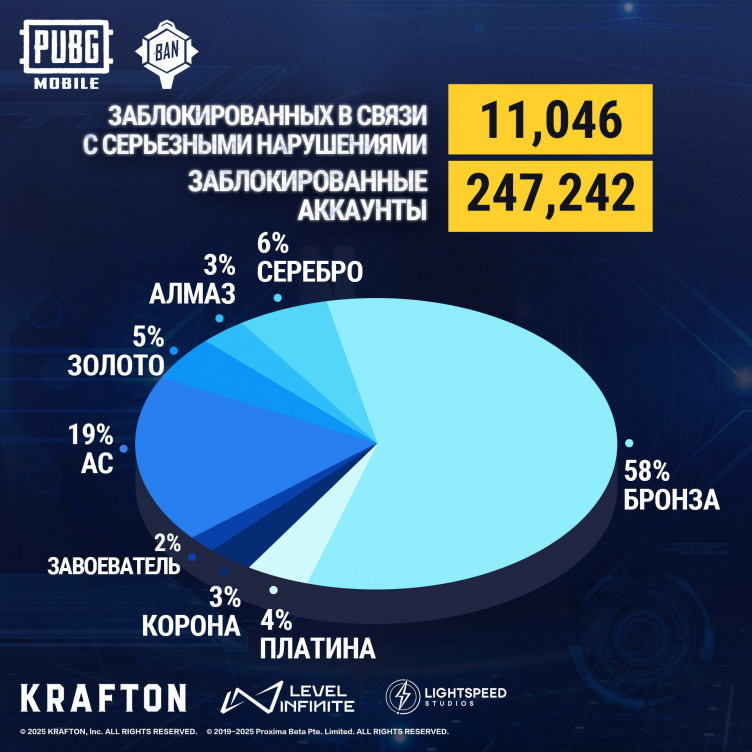 Разработчики мобильной версии PUBG забанили 247 тысяч аккаунтов читеров (и больше 11 тысяч устройств) за период с 28 ноября по 4 декабря 2025 года.