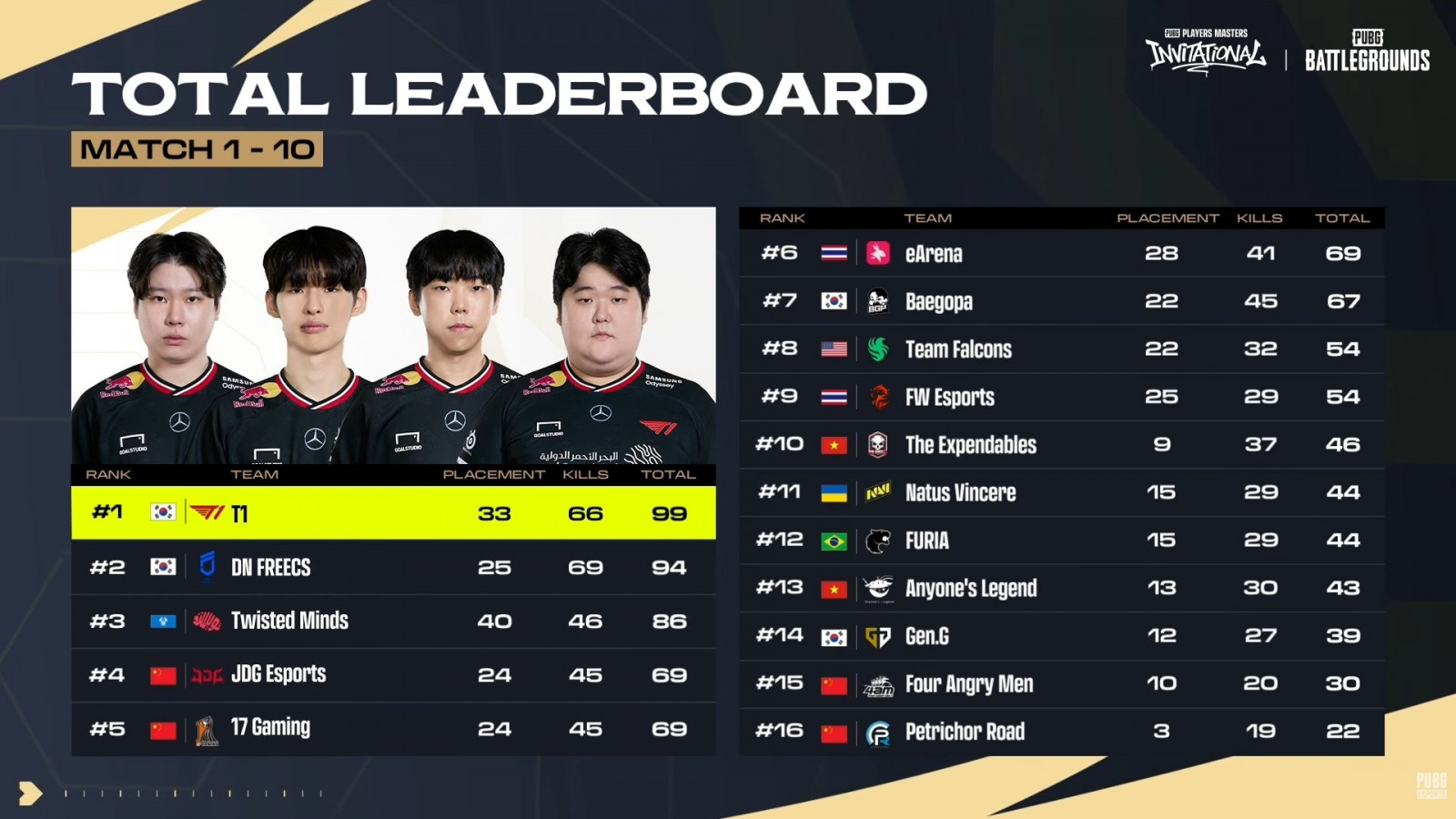 T1 лидирует на PUBG Players Masters Invitational по итогам 2-го дня