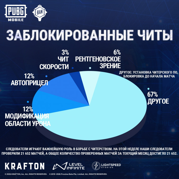 Разработчики мобильной версии PUBG забанили 361 тысячу аккаунтов читеров (и почти 16 тысяч устройств) за период с 30 января по 5 февраля 2026 года.