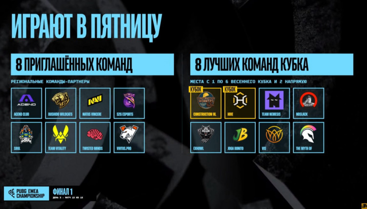 Коллектив Virtus.pro стал победителем первого финала европейского онлайн-чемпионата PUBG EMEA Championship: 2026 Spring по PUBG: BATTLEGROUNDS. Команда заработала $10 тысяч и 250 очков PGC.